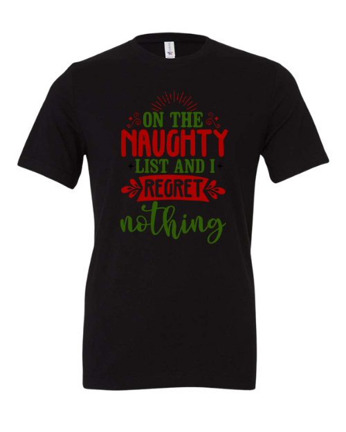 Our On The Naughty List T-Shirt is made for the unapologetically sarcastic, the holiday rebels, and the ones who know coal makes great decor.